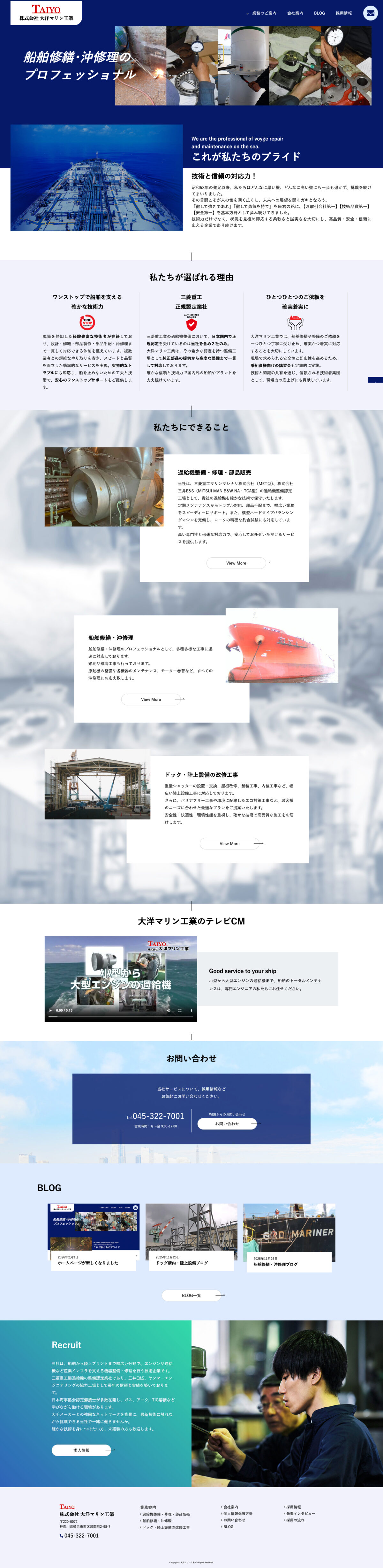 船舶修繕・沖修理のプロフェッショナル「大洋マリン工業様」のホームページをリニューアルさせていただきました。企業の特徴や業務内容をわかりやすく構成しました。
